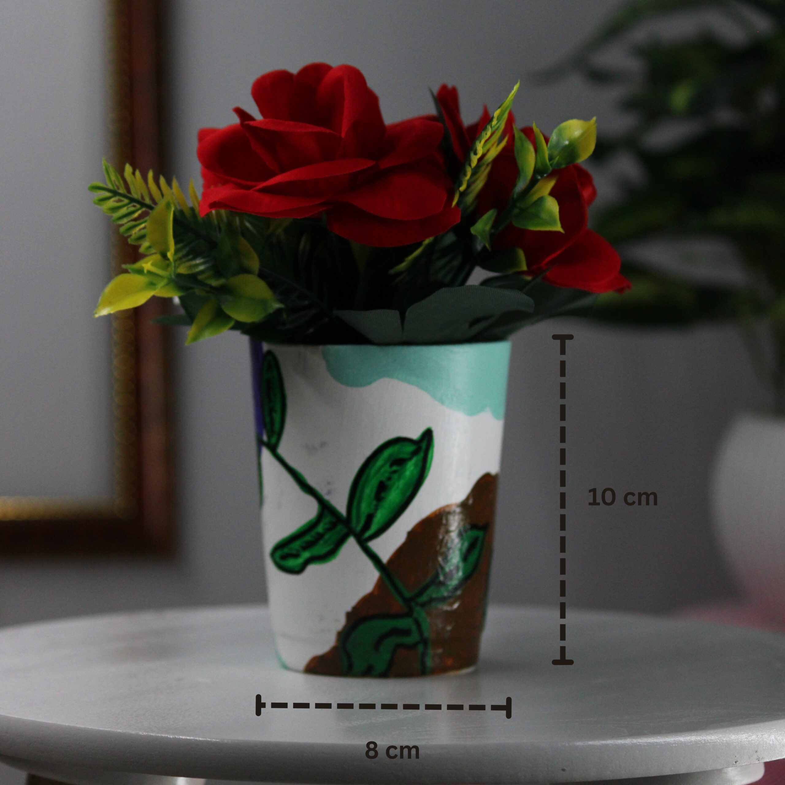 Beautiful handmade clay pots with lifelike rose artificial flowers. This set of 2 adds a natural and elegant touch to any corner of your home decor