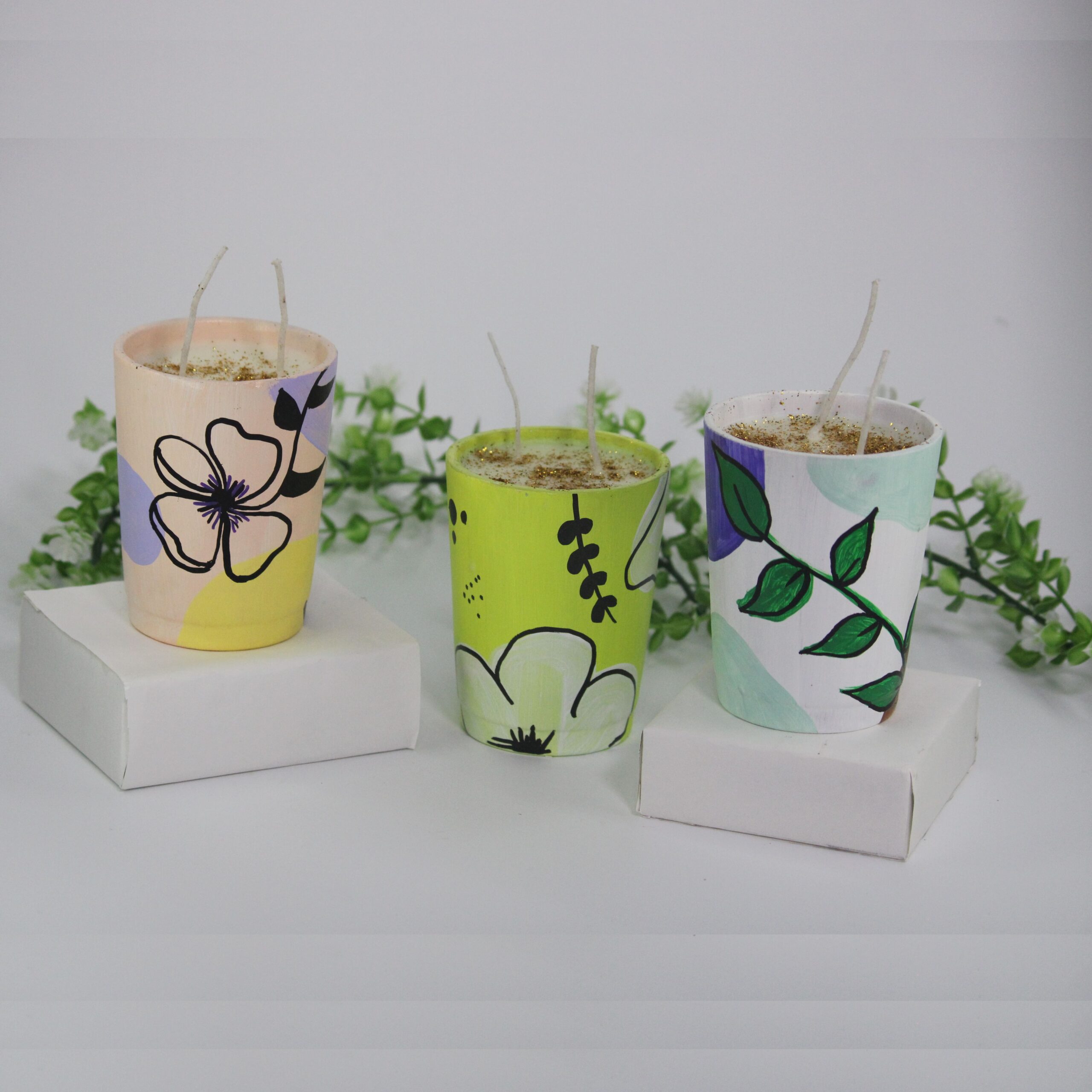 Set of 3 handmade terracotta candles – light up your home with rustic elegance and a cozy, inviting glow. Ideal for festivals, dinners, or relaxing evenings