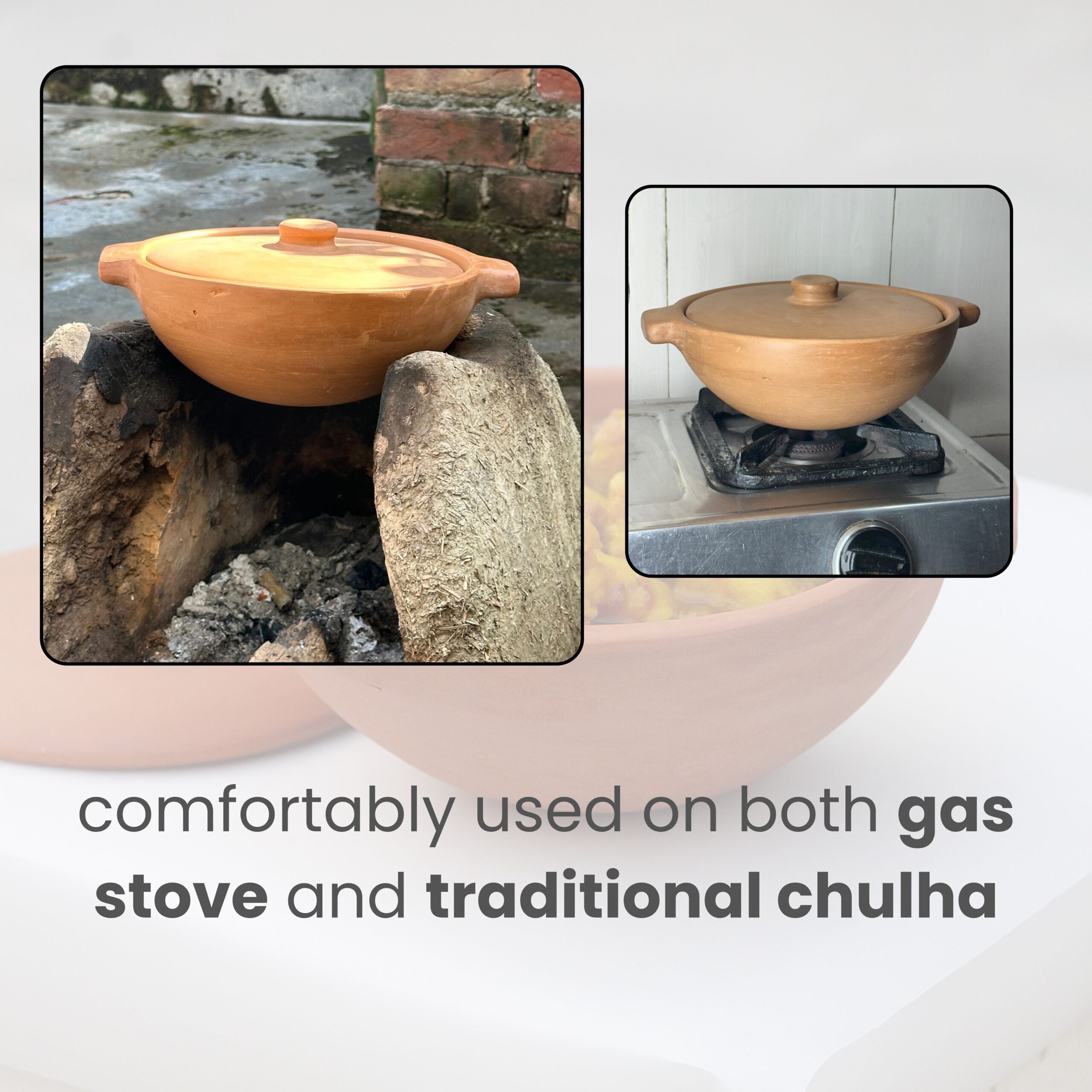 Cook your favorite dishes the traditional way with this handcrafted clay deep frying pan. Perfect for frying, sautéing, and preparing flavorful curries, it adds an earthy aroma to every meal. Made from natural mitti, it ensures even heat distribution and chemical-free cooking. Designed with a strong base, it can be used comfortably on both gas and chulha. A perfect blend of tradition and functionality for your kitchen.